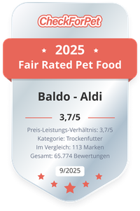 Von allen eingehenden Bewertungen zu Baldo - Aldi Hundefutter (600 Bewertungen) haben 6 Hundebesitzer das Baldo - Aldi Adult Hundefutter bewertet. Lesen Sie hier die individuellen Meinungen, vergleichen Sie den Preis oder bewerten Sie das Baldo - Aldi Hundefutter. Mit dem individuellen und auf Ihren Hund zugeschnittenen Futtercheck können Sie selbst schnell das bestbewertete und passende Hundefutter finden.