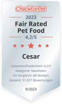 Von allen eingehenden Bewertungen zu Cesar Hundefutter (5.407 Bewertungen) haben 349 Hundebesitzer das Cesar Landküche Hundefutter bewertet. Lesen Sie hier die individuellen Meinungen, vergleichen Sie den Preis oder bewerten Sie das Cesar Hundefutter. Mit dem individuellen und auf Ihren Hund zugeschnittenen Futtercheck können Sie selbst schnell das bestbewertete und passende Hundefutter finden.