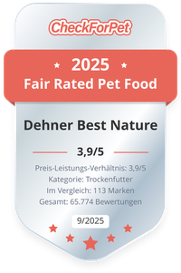 Von allen eingehenden Bewertungen zu Dehner Best Nature Hundefutter (1.807 Bewertungen) haben 75 Hundebesitzer das Dehner Best Nature Dehner Hundefutter bewertet. Lesen Sie hier die individuellen Meinungen, vergleichen Sie den Preis oder bewerten Sie das Dehner Best Nature Hundefutter. Mit dem individuellen und auf Ihren Hund zugeschnittenen Futtercheck können Sie selbst schnell das bestbewertete und passende Hundefutter finden.