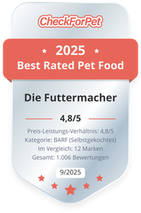 Von allen eingehenden Bewertungen zu Die Futtermacher Hundefutter (335 Bewertungen) haben 16 Hundebesitzer das Die Futtermacher Rind mit Gemüse Hundefutter bewertet. Lesen Sie hier die individuellen Meinungen, vergleichen Sie den Preis oder bewerten Sie das Die Futtermacher Hundefutter. Mit dem individuellen und auf Ihren Hund zugeschnittenen Futtercheck können Sie selbst schnell das bestbewertete und passende Hundefutter finden.