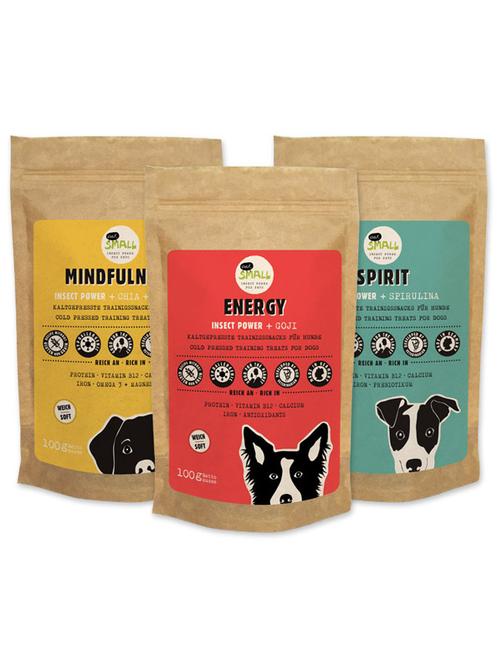 Ich mache viel Training mit meinem Hund (Agility, Rettung im Wald). Er liebt absolut die 3 Belohnungen mit Insekten von Eat Small. Ich kann sie in kleinere Teile brechen oder auch komplett geben. Sie sind echt perfekt für das Training!!