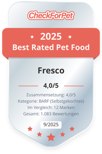 Von allen eingehenden Bewertungen zu Fresco Hundefutter (2.742 Bewertungen) haben 278 Hundebesitzer das Fresco Nassbarf Hundefutter bewertet. Lesen Sie hier die individuellen Meinungen, vergleichen Sie den Preis oder bewerten Sie das Fresco Hundefutter. Mit dem individuellen und auf Ihren Hund zugeschnittenen Futtercheck können Sie selbst schnell das bestbewertete und passende Hundefutter finden.