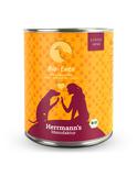 Herrmann's Classic Bio-Gans mit Buchweizen Was ist drin? 50 % Bio-Gans, proteinreich und leicht bekömmlich; Karkasse und Hälse liefern vor allem Calcium. Der Apfel ist eine Nährstoff-Bombe mit über 30 Vitaminen, Mineralstoffen und Spurenelementen, zudem enthält er den Darmschmeichler Pektin. Buchweizen ist KEIN Getreide und glutenfrei, er liefert viele wichtige Mineralstoffe. Kokosflocken enthalten Fasern, Fettsäuren und wichtige Ballaststoffe; sie können wurmwidrig wirken. Ergänzungsfuttermittel für Hunde. Für wen geeignet? Von Dackel bis Dogge und von Welpe bis Senior: Mit klaren Rezepturen bietet die Classic Linie nährstoffreiche Basis-Menüs in Bio-Qualität ohne Zusatzstoffe für eine artgerechte Ernährung. Die Menüs eignen sich für alle Altersklassen, sollten aber (besonders in den ersten 12 Lebensmonaten) individuell ergänzt werden. Hinweis für Allergiker: Diese Rezeptur ist ohne Getreide, Gluten und Laktose. Spuren können nicht ausgeschlossen werden. Warum CLASSIC? Rein und fein, so soll CLASSIC sein. Die abwechslungsreichen Basis-Menüs (ohne Zusatzstoffe), sind unsere klassischen Rezepturen „der ersten Stunde“; also bewährt und geliebt seit über 15 Jahren. Ziel war damals bis heute, für Allergiker und ernährungssensible Hunde Rezepturen mit möglichst wenigen, sinnvollen, biologischen Zutaten zu entwickeln. Daher verwenden wir in den Classic Menüs ausschließlich natürliche Zutaten, meist in Bio-Qualität, und keine Zusatzstoffe. So sind unsere Menüs wie selbst gekocht anzusehen: natürliche Basis-Menüs in Bio-Qualität für eine abwechslungsreiche und gute Ernährung, besonders geeignet für ernährungssensible Hunde. Einzelne Menüsorten ausschließlich gefüttert können nicht unbedingt den kompletten Nährstoffbedarf abdecken, daher empfehlen wir eine individuelle Nährstoffergänzung ganz nach Ihrer Wahl. Auch um das Calcium/Phosphor-Verhältnis ggf. auszugleichen, haben Sie je nach Verträglichkeit die Auswahl aus Eierschalenpulver, Algenkalk oder Calciumcitrat. Warum Herrmann’s Manufaktur? Herrmann’s Manufaktur überzeugt mit einem breiten, hochwertigen Futter-Sortiment für Hunde und Katzen in zertifizierter Bio-Qualität aus nachhaltiger Produktion in Deutschland. Für unsere Produkte verwenden wir ausgewählte Zutaten aus kontrolliert biologischer Erzeugung sowie artgerechter Tierhaltung. Das Nassfutter Classic Bio-Gans mit Buchweizen von Herrmann's im Überblick: Aus eigener Herstellung in Deutschland 100% frische und natürliche Bio-Zutaten Keine Massentierhaltung Aufzucht, Haltung und Schlachtung der Nutztiere streng nach ethischen Gesichtspunkten - mit Bio-Siegel und ganz ohne Hormoneinsatz Ohne Tierversuche Umweltfreundlich Gentechnikfrei Für jede Altersstufe individuell zu füttern Allergikergeeignet Ohne Zusatz von Zucker und Geschmacksverstärkern Ohne Aroma-, Lock-, Farb- und Konservierungsstoffe Das Team von Herrmann's, vertritt den Standpunkt, dass alle Tiere ein Recht auf ein artgerechtes Leben haben - auch diejenigen, die als Nutztiere dienen. Daher wird für die Futterproduktion nur Fleisch aus artgerechter Haltung verarbeitet, ausschließlich von Lieferanten die das Bio-Siegel tragen. Herrmann's Produkte tragen das Zeichen des Biokreises und werden regelmäßig durch ein unabhängiges Prüfinstitut (Lacon) kontrolliert.