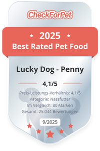 Von allen eingehenden Bewertungen zu Lucky Dog - Penny Hundefutter (2.012 Bewertungen) haben 420 Hundebesitzer das Lucky Dog - Penny Lucky Hundefutter bewertet. Lesen Sie hier die individuellen Meinungen, vergleichen Sie den Preis oder bewerten Sie das Lucky Dog - Penny Hundefutter. Mit dem individuellen und auf Ihren Hund zugeschnittenen Futtercheck können Sie selbst schnell das bestbewertete und passende Hundefutter finden.