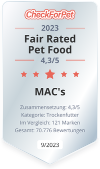 Von allen eingehenden Bewertungen zu MAC's Hundefutter (2.640 Bewertungen) haben 99 Hundebesitzer das MAC's Soft Huhn, Ente Truthahn Hundefutter bewertet. Lesen Sie hier die individuellen Meinungen, vergleichen Sie den Preis oder bewerten Sie das MAC's Hundefutter. Mit dem individuellen und auf Ihren Hund zugeschnittenen Futtercheck können Sie selbst schnell das bestbewertete und passende Hundefutter finden.