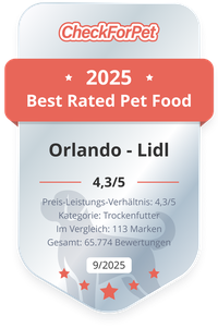 Von allen eingehenden Bewertungen zu Orlando - Lidl Hundefutter (11.757 Bewertungen) haben 570 Hundebesitzer das Orlando - Lidl Huhn Hundefutter bewertet. Lesen Sie hier die individuellen Meinungen, vergleichen Sie den Preis oder bewerten Sie das Orlando - Lidl Hundefutter. Mit dem individuellen und auf Ihren Hund zugeschnittenen Futtercheck können Sie selbst schnell das bestbewertete und passende Hundefutter finden.