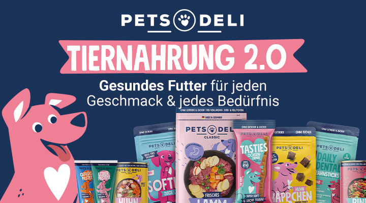 Eine abwechslungsreiche Ernährung ist wichtig für das Wohlbefinden unserer Hunde. Egal ob dabei auf Trockenfutter, Nassfutter, BARF-Menüs oder sogar fleischloses Hundefutter auf Insektenbasis zurückgegriffen wird - Pets Deli bietet eine große Auswahl an verschiedenen Futtermitteln für Hunde und Katzen.