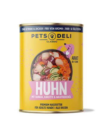Wer seinen Hund barfen möchte, kann auf die BARF-Menüboxen Pets Deli Frische-Menü Huhn mit Karotte und Süßkartoffel von Pets Deli zurückgreifen. Verwendet werden mindestens 60% rohes Muskelfleisch, das mit rohem Gemüse und Obst sowie wahlweise Kohlenhydrate ergänzt wird. Dabei können alle Sorten getreidefrei bestellt werden, was für eine gute Verträglichkeit sorgt. Zu den Frische-Menüs wird als Ergänzungsfuttermittel ein Mineral-Mix sowie verschiedene Öle angeboten, die für eine optimale Versorgung des Hundes mit Mineralien und Vitaminen sorgen.