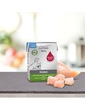 Unsere Nassnahrung Menu Puppy Chicken wird durch Fleischsaftgarung zubereitet. Fleischsaftgarung ist eine besondere Zubereitungsart von Frischfleisch, die in der Küche entstanden ist, nicht in der Futtermittelindustrie. Vorbild waren Techniken, die Spitzenköche oft verwenden, um Fleisch durch den Fleischsaft schmackhafter und auch gesünder zuzubereiten. Die Fleischsaftgarung ist eine ausgewählte Kombination dieser Zubereitungstechniken, angepasst an die körperlichen Bedürfnisse und Interessen des Hundes. Bei der Fleischsaftgarung wird Frischfleisch wie in der Küche nur im eigenen nährstoffreichen Fleischsaft gegart. Unser Nassnahrung Menu Puppy Chicken entsteht mit Hilfe der Kurzgartechnik. Diese Gartechnik funktioniert nur im Tetra Recart®- Karton, weil dort die Kerntemperatur des Frischfleisches über die schmalen Seiten schneller erreicht wird, als bei einer Dose. Durch die Fleischsaftgarung ist Menu: besonders nährstoffreich eine Hochgenuss für Ihren Hund hochverdaulich sehr ergiebig durch die hohe Nährstoffdichte enthält weniger Kohlenhydrate Fleischsaftgarung hebt Hundenahrung auf das Niveau menschlicher Nahrung. Daher sprechen wir auch von Hundenahrung und nicht von Hundefutter, denn ein bester Freund erhält kein Futter. Für Sie lassen wir unsere Nassnahrung Menu regelmäßig und unabhängig von einer der renommiertesten Prüfstellen Deutschlands testen, der ELAB Analytik GmbH (ehemals TÜV SÜD ELAB).