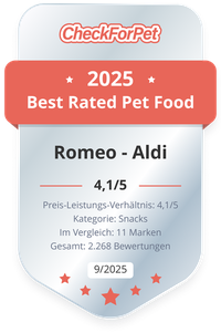 Von allen eingehenden Bewertungen zu Romeo - Aldi Hundefutter (8.213 Bewertungen) haben 68 Hundebesitzer das Romeo - Aldi Romeo Excellent Hundefutter bewertet. Lesen Sie hier die individuellen Meinungen, vergleichen Sie den Preis oder bewerten Sie das Romeo - Aldi Hundefutter. Mit dem individuellen und auf Ihren Hund zugeschnittenen Futtercheck können Sie selbst schnell das bestbewertete und passende Hundefutter finden.