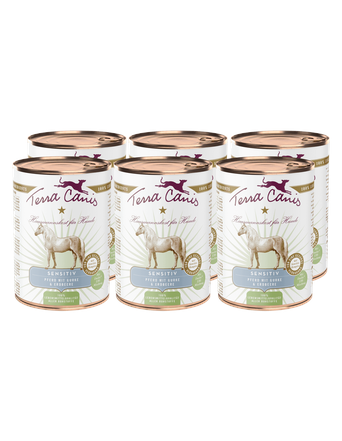 Terra Canis verfügt über eine umfangreiche Produktpalette, um für jeden Hund das passende Futter zu bieten. Von den klassischen Nassfuttermenüs in verschiedenen Sorten über getreidefreies Hundefutter wie Terra Canis Getreidefrei | Rind mit Zucchini, Kürbis und Oregano aus der Sensitiv Linie bis hin zu Lightfutter wie Terra Canis Light - Pute mit Sellerie, Ananas und Sanddornbeere, hypoallergenem Hundefutter wie Terra Canis Hypoallergen | Wasserbüffel mit Süßkartoffel und Welpenfutter – hier findet jeder Geschmack und jedes Bedürfnis die richtige Antwort. Besonders hervorzuheben sind hier das Terra Canis Welpenfutter, das speziell auf die Bedürfnisse junger Hunde abgestimmt ist, und das Terra Canis Senior | Pute mit Papaya, Brokkoli und Gesundheitskräutern, das die speziellen Ernährungsbedürfnisse älterer Hunde berücksichtigt. Laut unserem Terra Canis Nassfutter Test bietet das Unternehmen Futter, das die speziellen Ernährungsbedürfnisse älterer sowie jüngerer Hunde berücksichtigt und für Hunde mit unterschiedlichsten Ernährungsvorzügen und Allergien geeignet ist.