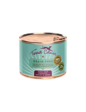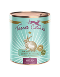 Terra Canis GETREIDEFREI-Menüs weisen einen hohen Fleischanteil von 60 % – 70 % auf, ergänzt durch viel gesundes, ballaststoffreiches Gemüse, Obst und Kräuter. Zusätze wie Seealge, Mineralerde, Eierschalenpulver, Blütenpollen und Bierhefe liefern zahlreiche, natürliche Vitamine und Mineralstoffe. Das enthaltene hochverdauliche, cholesterin- und glutenfreie Kokosmehl ist ein wahres Wundermehl. Es gilt als eine der ergiebigsten Ballaststoffquellen, ist sanft zum Darm und enthält ein breites Angebot an wichtigen Aminosäuren. Leinöl mit seinem hohen Gehalt an Omega-3-Fettsäuren rundet die GETREIDEFREI-Menüs ideal ab. Geeignet sind diese Menüs für alle gesunden Hunde, deren Halter auf eine artgerechte, getreidefreie Ernährung setzen. Besonders geeignet für Hunde mit Unverträglichkeiten gegen Getreide sowie für Hunde, die aus medizinischen Gründen getreidefrei ernährt werden sollten. Mit dem Konzept „Hundenahrung in 100 % Lebensmittelqualität aller Rohstoffe“ setzte Terra Canis vor 15 Jahren völlig neue Qualitätsmaßstäbe in der Futtermittelbranche. Denn erstmalig wurde Tiernahrung – dank einer Sondergenehmigung der Bayerischen Futtermittelbehörde – in einem echten Lebensmittelbetrieb, der Münchener Traditionsmetzgerei Schäbitz, hergestellt. Möglich wurde dies, da hier seit Beginn ausschließlich Rohstoffe verwendet wurden, die zum Zeitpunkt der Verarbeitung aufgrund ihrer Frische und Qualität offiziell für Humannahrungsprodukte zugelassen sind. Diese kompromisslose Qualität und der damit verbundene leckere, appetitliche Geruch der Menüs unterscheidet Terra Canis-Menüs seit Anfang an von allen anderen Produkten auf dem Markt. Durch die stetig steigende Nachfrage ist die Metzgerei im Herzen von München an ihre Kapazitätsgrenze gekommen. Da für Terra Canis die Qualität das oberste Gebot ist, werden die Menüs ab sofort in unserer neuen, eigenen Manufaktur vor den Toren Münchens produziert. Die Herstellung der Produkte in den „eigenen vier Wänden“ erlaubt maximale Kontrolle der Rohstoffqualität. Zudem wurden die drei Metzgermeister der Münchner Metzgerei Schäbitz mit ihrem gesamten Team übernommen, und damit jahrzehntelange Erfahrung und Expertise des Metzgerhandwerks. Alle verwendeten Rohstoffe, die Produktionsstätte sowie das Hygiene-Konzept unterliegen zu 100 % Lebensmittelstandards. Alleinfuttermittel für Hunde.