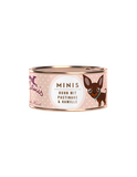 Kleiner Hund – Riesengenuss: unsere ausgewählten MINI-Menüs für Minihunde. Natürlich – wie alle Terra Canis-Menüs – mit viel gutem Fleisch, Gemüse, Obst und Kräutern in 100 % Lebensmittelqualität. Wegen des kurzen Verdauungstrakts können kleine Hunde und Zwergrassen Getreide meist noch schlechter verdauen als ihre großen Artgenossen. Deshalb sind Terra Canis MINI-Menüs komplett getreidefrei. Außerdem sind die Zutaten extrem fein püriert, damit auch sicher nichts in der Speiseröhre stecken bleiben kann. Natürliche Zusätze wie Bierhefe, Eierschalenpulver, Seealge, Hagebutte und Mineralerde liefern zahlreiche Vitamine und Mineralstoffe, Leinöl liefert die wichtigen Omega-3-Fettsäuren. Das enthaltene Kokosmehl ist ein wahres Wundermehl. Es ist cholesterin- und glutenfrei, gilt als eine der ergiebigsten Ballaststoffquellen und ist hochverdaulich. Es ist sanft zum Darm und enthält ein breites Angebot an wichtigen Aminosäuren. Praktisch sind auch die kleinen Dosen. Terra Canis MINI-Menüs werden in 100 g-Dosen angeboten. So wandert jede Mahlzeit immer frisch in den Napf. Mit dem Konzept „Hundenahrung in 100 % Lebensmittelqualität aller Rohstoffe“ setzte Terra Canis vor 15 Jahren völlig neue Qualitätsmaßstäbe in der Futtermittelbranche. Denn erstmalig wurde Tiernahrung – dank einer Sondergenehmigung der Bayerischen Futtermittelbehörde – in einem echten Lebensmittelbetrieb, der Münchener Traditionsmetzgerei Schäbitz, hergestellt. Möglich wurde dies, da hier seit Beginn ausschließlich Rohstoffe verwendet wurden, die zum Zeitpunkt der Verarbeitung aufgrund ihrer Frische und Qualität offiziell für Humannahrungsprodukte zugelassen sind. Diese kompromisslose Qualität und der damit verbundene leckere, appetitliche Geruch der Menüs unterscheidet Terra Canis-Menüs seit Anfang an von allen anderen Produkten auf dem Markt. Durch die stetig steigende Nachfrage ist die Metzgerei im Herzen von München an ihre Kapazitätsgrenze gekommen. Da für Terra Canis die Qualität das oberste Gebot ist, werden die Menüs ab sofort in unserer neuen, eigenen Manufaktur vor den Toren Münchens produziert. Die Herstellung der Produkte in den „eigenen vier Wänden“ erlaubt maximale Kontrolle der Rohstoffqualität. Zudem wurden die drei Metzgermeister der Münchner Metzgerei Schäbitz mit ihrem gesamten Team übernommen, und damit jahrzehntelange Erfahrung und Expertise des Metzgerhandwerks. Alle verwendeten Rohstoffe, die Produktionsstätte sowie das Hygiene-Konzept unterliegen zu 100 % Lebensmittelstandards. Alleinfuttermittel für Hunde.