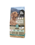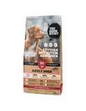 Frisches Rinderfleisch (41%), getrocknetes Rinderfleisch (25%), Amarant (21%), Erbsenmehl, Apfel, Rindertalg (3%), Chiasamen, Mineralstoffe, Leinsamen, Lachsöl (1%), Karotten, Zucchini, Bockshornklee, Löwenzahn, Flohsamen, Spinat, Rosmarin (0,1%)