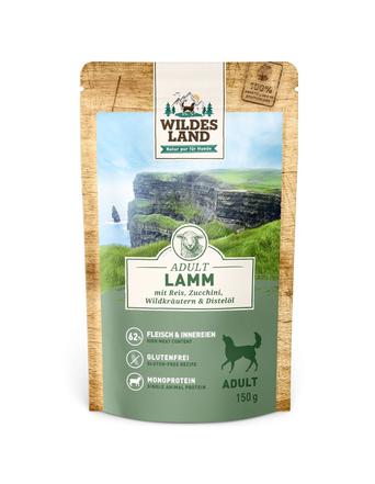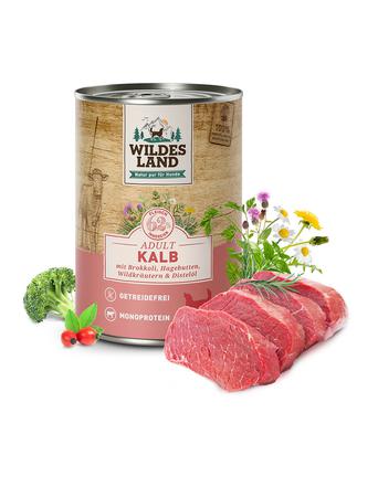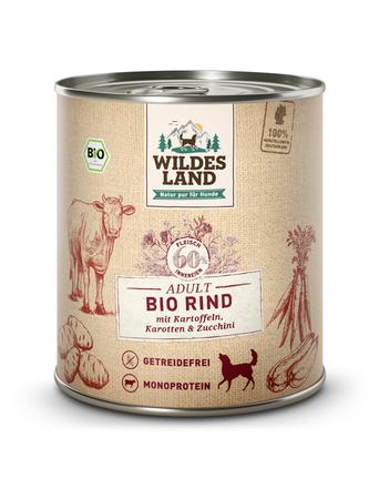 Wildes Land Nassfutter ist ebenso vielfältig wie die Trockenfutter-Linie und umfasst drei Produktlinien von Classic über PUR bis zum BIO-Nassfutter. Das frische Fleisch wird ganz natürlich in der eigenen Fleischbrühe konserviert und mit Wildkräutern und hochwertigen Ölen ergänzt. Dabei enthält das PUR-Nassfutter jeweils nur eine tierische Proteinquelle, sodass sich das Futter auch für Hunde mit sensibler Verdauung eignet. Die BIO-Linie kombiniert eine Fleischsorte mit hochwertigen Kohlenhydratquellen aus kontrolliert biologischer Landwirtschaft. Dazu gehört zum Beispiel das BIO-Nassfutter "Wildes Land Bio Adult Rind mit Kartoffel & Karotte" und "Wildes Land Classic Adult Ente mit Kartoffel".