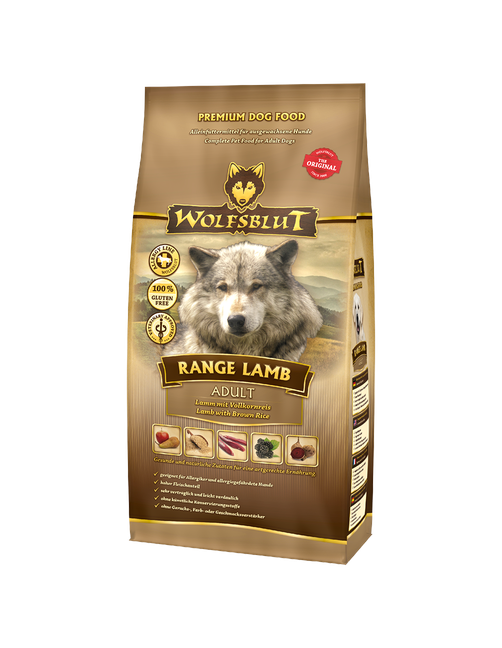 Range Lamb Adult Trockenfutter mit Lamm und Vollkornreis Auf einen Blick: Hundeernährung nach dem Vorbild des Wolfes Rezeptur mit natürlichen Inhaltsstoffen Frisches und gut bekömmliches Lamm als Hauptbestandteil Lamm enthält viele wichtige Mineralstoffe, vor allem Eisen, Zink und Niacin – wichtig für die Zell- und Blutbildung, Stärkung der Abwehrkräfte, Energiegewinnung sowie für das Nervensystem. Ohne Gluten, da es im natürlichen Beuteschema des Urahns des Hundes nicht vorkommt und zudem zu den häufigsten Allergieauslösern bei Hunden zählt Mit wertvollen Superfoods wie Vollkornreis, Äpfel, Erbsen und Brombeeren mit wertvollen Inhaltsstoffen Ohne Mais, Soja, Geschmacksverstärkern & künstlichen Zusätzen (ausgenommen Vitamine & Mineralstoffe) Ein Geschmacksklassiker, der sehr gern gefressen wird Mit Tierärzten entwickelt Ohne Tierversuche In den Rocky Mountains Nordamerikas, der arktischen Tundra, den Bergen und Wäldern Europas bis hin zu den Wüsten und Steppen Zentralasiens jagen Wölfe ihre Beute. Diese versorgt sie mit Fleisch und nährstoffreichen Innereien, aber auch mit Gemüse, Früchten, Beeren, Wurzeln und Kräutern über den Mageninhalt der Beute. Getreide gehört hier nicht dazu. So erhält der Wolf seine benötigten Vitamine, Mineralstoffe, Spurenelemente, Enzyme und sekundären Pflanzenstoffe. Da der Wolf der Urahn aller Hunde ist, orientiert sich unser Wolfsblut Hundetrockenfutter an diesen natürlichen Fressgewohnheiten des Wolfs. Es enthält viel Fleisch oder Fisch kombiniert mit Superfoods, die wertvolle Inhaltsstoffe enthalten – und das wie in der Natur, ganz ohne Getreide. Unsere Auswahl an außergewöhnlichen Fleischsorten und nährstoffreichen Superfoods baut dabei auf den Lebensräumen des Wolfs und deren bunter Nahrungsvielfalt auf. Wolfsblut bietet jedem Hund eine artgerechte und ursprüngliche Ernährung und mit seiner Sortenvielfalt ist für jeden etwas dabei, das er verträgt. Die Rezeptur von RANGE LAMB ADULT Trockenfutter verbindet die Nahrung des Wolfs mit den neuesten wissenschaftlichen Erkenntnissen über richtige Hundeernährung. Die einzelnen Futterbestandteile von RANGE LAMB ADULT wurden zusammen mit Tierärzten, passend zum natürlichen Beuteschema des Wolfs und den Erkenntnissen zu ganzheitlicher Hundeernährung, zusammengestellt. Das Trockenfutter von Wolfsblut ist damit einzigartig. Vollkornreis enthält besonders viele B-Vitamine, Eisen, Zink, Magnesium und Kalium im Vergleich zu weißem, geschälten Reis. Äpfel : Mit 30 Vitaminen, Spurenelementen, Ballaststoffen, Mineralstoffen und sekundären Pflanzenstoffen wie Polyphenolen und Pektin eine wahre Nährstoffbombe. Erbsen : Die kleinen Eiweißknirpse enthalten neben ungesättigten Fettsäuren auch reichlich Ballaststoffe, die der Verdauung gut tun und den Blutzuckerspiegel regulieren können. Brombeeren : Die Beeren enthalten besonders viel Magnesium und Eisen. Auch mit ihrem Provitamin A und Vitamin E-Gehalt schlagen Brombeeren die heimischen Artverwandten.