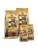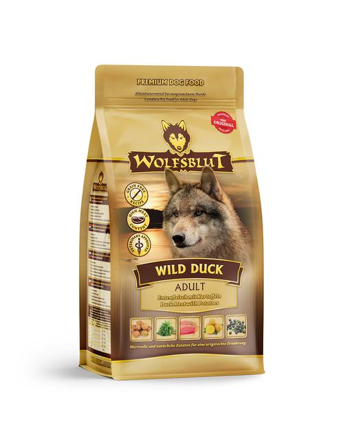 Wild Duck Adult Trockenfutter mit Ente und Kartoffel Auf einen Blick: Hundeernährung nach dem Vorbild des Wolfes Rezeptur mit natürlichen Inhaltsstoffen Frische und gut bekömmliche Ente als Hauptbestandteil Ente enthält wertvolle B-Vitamine, darunter Vitamin B1, B2, B6, B12 und Niacin sowie relevante Mengen an Mineralstoffen wie Eisen und Zink Ohne Getreide, da es im natürlichen Beuteschema des Urahns des Hundes nicht vorkommt und zudem zu den häufigsten Allergieauslösern bei Hunden zählt Mit wertvollen Superfoods wie Süßkartoffeln, Holunderbeeren, Aroniabeeren sowie Löwenzahn, Topinambur und Ginseng mit wertvollen Inhaltsstoffen Mit natürlichen Prebiotika aus Topinambur Ohne Mais, Gluten, Soja, Geschmacksverstärkern & künstlichen Zusätzen (ausgenommen Vitamine & Mineralstoffe) Ein Geschmacksklassiker, der sehr gern gefressen wird Gemäß Lebensmittelstandard produziert Mit Tierärzten entwickelt Ohne Tierversuche In den Rocky Mountains Nordamerikas, der arktischen Tundra, den Bergen und Wäldern Europas bis hin zu den Wüsten und Steppen Zentralasiens jagen Wölfe ihre Beute. Diese versorgt sie mit Fleisch und nährstoffreichen Innereien, aber auch mit Gemüse, Früchten, Beeren, Wurzeln und Kräutern über den Mageninhalt der Beute. Getreide gehört hier nicht dazu. So erhält der Wolf seine benötigten Vitamine, Mineralstoffe, Spurenelemente, Enzyme und sekundären Pflanzenstoffe. Da der Wolf der Urahn aller Hunde ist, orientiert sich unser Wolfsblut Hundetrockenfutter an diesen natürlichen Fressgewohnheiten des Wolfs. Es enthält viel Fleisch oder Fisch kombiniert mit Superfoods, die wertvolle Inhaltsstoffe enthalten – und das wie in der Natur, ganz ohne Getreide. Unsere Auswahl an außergewöhnlichen Fleischsorten und nährstoffreichen Superfoods baut dabei auf den Lebensräumen des Wolfs und deren bunter Nahrungsvielfalt auf. Wolfsblut bietet jedem Hund eine artgerechte und ursprüngliche Ernährung und mit seiner Sortenvielfalt ist für jeden etwas dabei, das er verträgt. Die Rezeptur von WILD DUCK Trockenfutter verbindet die Nahrung des Wolfs mit den neuesten wissenschaftlichen Erkenntnissen über richtige Hundeernährung. Die einzelnen Futterbestandteile von WILD DUCK wurden zusammen mit Tierärzten, passend zum natürlichen Beuteschema des Wolfs und den Erkenntnissen zu ganzheitlicher Hundeernährung, zusammengestellt. Das Trockenfutter von Wolfsblut ist damit einzigartig. Kartoffeln : Sie liefern komplexe Kohlenhydrate sowie Ballaststoffe, sind fettarm und verfügen über 15 verschiedene Vitamine, Mineralstoffe und Spurenelemente wie Magnesium, Eisen, Zink und Phosphor sowie einen hohen Anteil an Kalium, Vitamin B und C. Holunderbeeren : Die schwarzblauen Beeren enthalten neben den Anthocyanen viel Vitamin C und Folsäure. Der enthaltene Farbstoff Sambucyanin soll außerdem eine antientzündliche Wirkung haben. Aroniabeeren : Aronia enthält große Mengen an Pflanzenstoffen, denen besonderer gesundheitlicher Nutzen nachgesagt wird, wie Flavonoiden und phenolischen Säure. Löwenzahn : Er besticht mit vielen Mineralstoffen wie Magnesium, Folsäure, Mangan, und Vitamin K. Dieses Vitamin spielt eine wichtige Rolle bei der Blutgerinnung. Leinsamen : Die Ballast- und Schleimstoffe in den kleinen Körner haben einen positiven Effekt auf die Verdauung und besitzen einen hohen Gehalt an mehrfach-ungesättigten Omega 3-Fettsäuren. Topinambur : Er enthält einen hohen Anteil an Inulin, was prebiotisch wirkt und das Wachstum gesunder Bakterienstämme im Darm anregt. Eine gesunde Darmflora wirkt sich positiv auf das Immunsystem aus. Ginseng : Im asiatischen Raum fungiert er als Heilpflanze. Grund dafür ist der hohe Nährstoffanteil der Pflanze, die reich an Aminosäuren, Vitaminen, Kupfer, Eisen und Calcium ist.