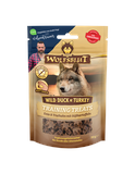 Wolfsblut Training Treats Wild Duck & Turkey Snack Der softe Trainingssnack in Sternchenform mit Ente, Truthahn und Süßkartoffel und dem Gütesigel des bekannten Welpentrainers André Vogt. Wir hatten die tolle Möglichkeit uns mit dem Hundeprofi André Vogt, bekannt aus sixx "Der Welpentrainer, über den perfekten Snack auszutauschen und mit unserem Ernährungskonzept zu verbinden: Wertvolle und natürliche Zutaten mit viel Fleisch und einer getreidefreien Rezeptur für eine gute Verträglichkeit. Gemeinsam mit André Vogt, haben wir etwas ganz Besonderes entwickelt - die Wolfsblut Training Treats Wild Duck & Turkey - speziell für das Hundetraining aller Altersstufen. Die softe Konsistenz und die Größe der Snacks eignen sich besonders gut für viele Trainingszwecke, - ohne langes Kauen zu verursachen. Die Training Treats kommen im kleinen handlichen Format mit Wiederverschlussmöglichkeit, das sich ideal für das Training unterwegs eignet. Die Snacks Training Treats Wild Duck & Turkey von Wolfsblut im Überblick: Entwickelt mit dem bekannten Hundetrainer André Vogt, bekannt aus sixx "Der Welpentrainer" Snacks in kleiner Sternchenform mit softer Konsistenz, perfekt für viele Trainingszwecke, ohne langes Kauen, geeignet Rezeptur mit natürlichen Inhaltsstoffen Mit viel Ente und Truthahn als Hauptbestandteil der Rezeptur Mit wertvollen Superfoods wie Süßkartoffeln, schwarzen Johannisbeeren und Pastinaken mit wertvollen Inhaltsstoffen Ohne Getreide, da es im natürlichen Beuteschema des Urahns des Hundes nicht vorkommt und zudem zu den häufigsten Allergieauslösern bei Hunden zählt Ohne Tierversuche Ohne Zucker, Soja, Geschmacksverstärkern & künstlichen Zusätzen (ausgenommen Vitamin C) Praktische und handliche Packung mit Wiederverschluss, die in jede Jackentasche passt Für alle Altersstufen und Hundegrößen geeignet