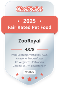 Von allen eingehenden Bewertungen zu ZooRoyal Hundefutter (4.461 Bewertungen) haben 55 Hundebesitzer das ZooRoyal Saftige Ringe, Rind Hundefutter bewertet. Lesen Sie hier die individuellen Meinungen, vergleichen Sie den Preis oder bewerten Sie das ZooRoyal Hundefutter. Mit dem individuellen und auf Ihren Hund zugeschnittenen Futtercheck können Sie selbst schnell das bestbewertete und passende Hundefutter finden.