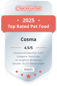 Von allen eingehenden Bewertungen zu Cosma Katzenfutter (620 Bewertungen) haben 14 Katzenbesitzer das Cosma Thai Huhn & Thunfisch Katzenfutter bewertet. Lesen Sie hier die individuellen Meinungen, vergleichen Sie den Preis oder bewerten Sie das Cosma Katzenfutter. Mit dem individuellen und auf Ihren Katze zugeschnittenen Futtercheck können Sie selbst schnell das bestbewertete und passende Katzenfutter finden.