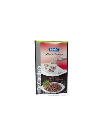 Dr. Clauder's Portionsbeutel Rind & Truthahn gefüttert.
