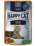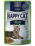 Nassfutter für Katzen mit feinem Lamm Zur Erhaltung eines gesunden Stoffwechsels brauchen Katzen Nassfutter. Happy Cat Meat in Sauce Culinary Weide-Lamm bietet deiner Samtpfote über 90 Prozent tierische Proteine am Gesamtprotein, ist leicht bekömmlich für Magen und Darm – und extra schmackhaft. Das Katzen-Nassfutter mit hohem Fleischanteil ist besonders für kastrierte und sterilisierte Kater und Katzen geeignet. Die Rezepturen aller Happy Cat Nassfutter-Zubereitungen wurden in enger Zusammenarbeit mit Tierärzten entwickelt und ernährungsphysiologisch bestätigt. Unser Natural Life Concept® berücksichtigt alle wichtigen Punkte der ausgewogenen, artgerechten Katzenernährung. Damit du keine weiteren Nahrungsergänzungsmittel benötigst, sind alle wichtigen Vitamine und Mineralstoffe bereits im Nassfutter enthalten. Nur naturreine Zutaten für ein hochwertiges Nassfutter: Katzen genießen es. Welche Vorteile hat Meat in Sauce Culinary Weide-Lamm? leicht bekömmlich gut verträglich für Magen und Darm geeignet für sterilisierte und kastrierte Katzen und Kater praktische Portionspackungen naturreine Zutaten Wie oft ist Nassfutter für Katzen empfehlenswert? Brauchen Katzen Nassfutter? Ja! Die Vorfahren der Hauskatze stillen ihren Flüssigkeitsbedarf vor allem über saftige Beutetiere. Daher haben viele Hauskatzen evolutionsbedingt ein geringes Trinkbedürfnis. Nimmt die Katze dauerhaft zu wenig Wasser zu sich, können Nierenprobleme entstehen. Katzen-Nassfutter wie Happy Cat Meat in Sauce Culinary Weide-Lamm sorgt also für zusätzliche Flüssigkeit. Ideal für den Nährwertgehalt ist eine Mischfütterung aus zwei Teilen gutem Katzen-Nassfutter mit hohem Fleischanteil und einem Teil Trockenfutter . Dazu reichst du frisches Wasser. Übrigens: Katzen-Nassfutter sollte im Napf nicht lange stehen bleiben. Angebrochene Portionen von Meat in Sauce Culinary und anderem Happy Cat Katzen-Nassfutter halten sich gekühlt zwei Tage.