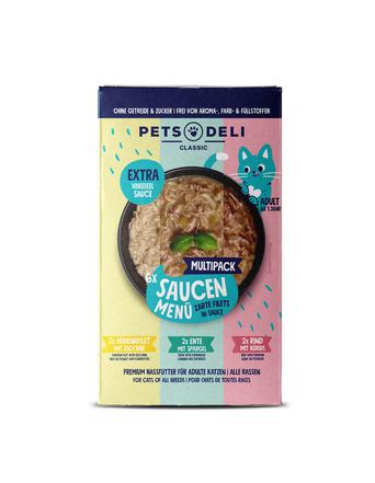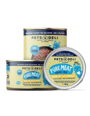 Das Produktsortiment von Pets Deli bietet eine beeindruckende Vielfalt, um den unterschiedlichen Vorlieben und Bedürfnissen von Katzen gerecht zu werden. Mit einem Fokus auf Qualität und Vielfalt hebt sich Pets Deli durch seine umfangreiche Auswahl an Konsistenzen, Fleischsorten und speziellen Rezepturen von anderen Premium-Marken ab.