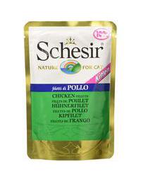 Schesir Kitten Hühnerfilet Pouch gefüttert.