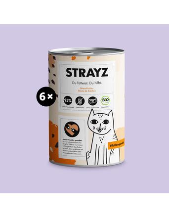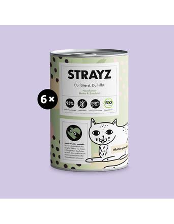 Strayz Nassfutter für Katzen wird super gerne gefressen es riecht angenehm. Eine 85 g Portion reicht, um meine grossen Kater satt zu kriegen. Das wiederum erschliesst mich durch eine hervorragende Zusammensetzung aller Sorten.