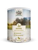 Freeze Dried Huhn Kleine Snacks können im Alltag mit Ihrem Stubentiger eine wichtige Rolle spielen. Gelegentliche Leckerbissen stärken das Vertrauen und die Beziehung zwischen Mensch und Katze. Motivieren Sie Ihren Vierbeiner zum Erlernen kleiner Tricks oder belohnen Sie ihn einfach zwischendurch. Auch in Trainings- und Belohnungssituationen ist es jedoch unerlässlich, auf eine gesunde und artgerechte Ernährung unserer Lieblinge zu achten. Leckerlis mit Getreide, Zucker oder künstlichen Inhaltsstoffen sollten unbedingt gemieden werden. Wir von Wildes Land legen besonderen Wert auf Qualität und artgerechtes Katzenfutter auf natürlicher Basis. Deshalb haben wir einen gesunden Leckerbissen für Katzen entwickelt, der ausschließlich aus naturbelassenen Zutaten besteht. Unser Freeze Dried Snack Huhn besteht zu 99 % aus Hühnerfleisch. Das Fleisch wird zunächst in Würfelform gebracht und eingefroren. Anschließend wird ihm in einem speziellen Gefriertrocknungsprozess durch Vakuum die Flüssigkeit entzogen. Auf diese Weise bleiben alle Nährstoffe enthalten. Ihr Stubentiger wird so auch bei der Vergabe kleiner Leckereien mit hochwertigen Proteinen und wichtigen Nährstoffen versorgt. Da die Leckerlis keinerlei künstliche Zutaten enthalten sind, sind sie zudem nicht nur äußerst schmackhaft, sondern auch besonders gut verträglich. Unser Tipp: Sie können das tägliche Katzenfutter verfeinern und besonders schmackhaft machen, indem Sie den Freeze Dried Snack einfach darüberstreuen. Ihre Katze wird es lieben! Unsere Produkte enthalten selbstverständlich keinerlei Zusatzstoffe wie Konservierungsmittel, Farb-, Aroma- oder Lockstoffe. Unser Katzenfutter wird ausnahmslos tierversuchsfrei entwickelt. Freeze Dried Snack Huhn für Katzen im Überblick: √ Huhn Pur √ Getreidefreie Rezeptur √ Hohe Akzeptanz √ Hochwertige Rohstoffe und Zutaten √ Schonend gefriergetrocknet √ Ohne Zusatz von Farb-, Aroma- & Konservierungsstoffen √ Ohne Tierversuche