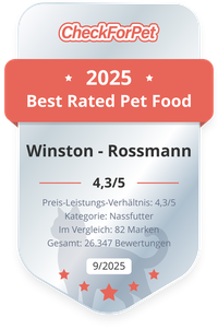 Von allen eingehenden Bewertungen zu Winston - Rossmann Katzenfutter (4.402 Bewertungen) haben 64 Katzenbesitzer das Winston - Rossmann Pute, Lachs, Rind, Hase Katzenfutter bewertet. Lesen Sie hier die individuellen Meinungen, vergleichen Sie den Preis oder bewerten Sie das Winston - Rossmann Katzenfutter. Mit dem individuellen und auf Ihren Katze zugeschnittenen Futtercheck können Sie selbst schnell das bestbewertete und passende Katzenfutter finden.