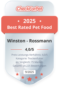 Von allen eingehenden Bewertungen zu Winston - Rossmann Katzenfutter (4.402 Bewertungen) haben 75 Katzenbesitzer das Winston - Rossmann Rind Katzenfutter bewertet. Lesen Sie hier die individuellen Meinungen, vergleichen Sie den Preis oder bewerten Sie das Winston - Rossmann Katzenfutter. Mit dem individuellen und auf Ihren Katze zugeschnittenen Futtercheck können Sie selbst schnell das bestbewertete und passende Katzenfutter finden.