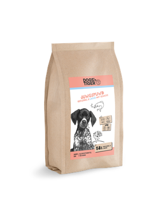Wilma, ein 6,3 Monate alter Mischling, wurde über einen Zeitraum von 1 Monat mit dem Dogs'n Tiger Jungspund gefüttert. Die Bewertung zeigt eine Gesamtzufriedenheit von ★ ★ ★ ★ ★ bei einer Weiterempfehlungsrate von 80% und wurde am 11.02.2024 um 17:54 veröffentlicht.