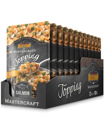 Balu, ein 3,5 Jahre alter Golden Retriever, wurde über einen Zeitraum von über 1 Jahr mit dem Belcando Mastercraft Topping Lachs mit Brokkoli gefüttert. Die Bewertung zeigt eine Gesamtzufriedenheit von ★ ★ ★ ★ ★ bei einer Weiterempfehlungsrate von 10% und wurde am 12.11.2024 um 18:24 veröffentlicht.