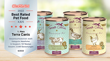 Die Produkte von Terra Canis zeichnen sich durch ihre außergewöhnlich hohe Qualität der Rohstoffe aus. Aufgrund der Herstellung nach Lebensmittelstandard verströmen sie einen unwiderstehlich appetitanregenden Duft, der bei Futtermitteln minderer Qualität oft fehlt. Qualität bei Terra Canis bedeutet auch, dass minderwertige Zutaten wie Tier- oder Knochenmehl, Schlachtabfälle, Füllstoffe, Lockstoffe, Konservierungsstoffe, Farbstoffe und Aromastoffe in der Herstellung absolut keinen Platz finden. Zudem wird auf künstliche Antioxidantien sowie Zucker im Hundefutter vollständig verzichtet. Terra Canis Nassfutter bietet ein besonders bekömmliches Futter, das sich an den natürlichen und artgerechten Bedürfnissen des Hundes orientiert. Dazu gehört auch der Verzicht auf Getreide, wobei nur minimale Mengen an Pseudogetreide verwendet werden. Alle Produkte werden in enger Zusammenarbeit mit Tierärzten entwickelt und von diesen empfohlen. Das gute Testurteil in diversen Hundefutter Tests, einschließlich unserem Terra Canis Nassfutter Test, unterstreicht die hohe Qualität der Produkte.